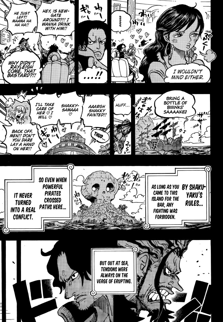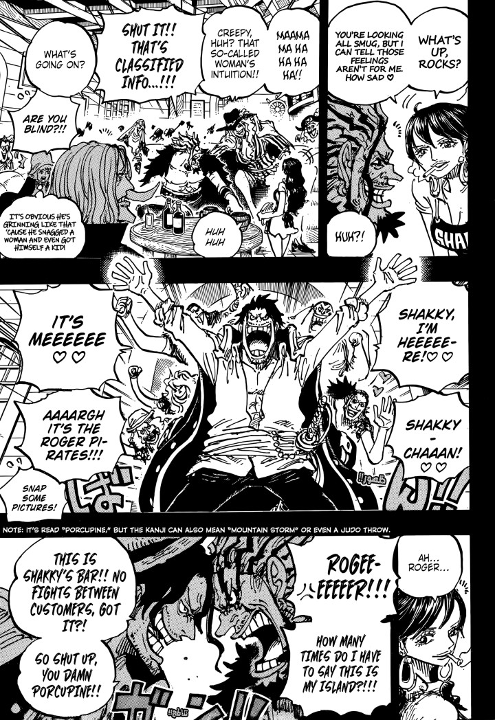 罗杰海贼团和卡普大战一场后,他们奏凯逃掉了,罗杰还有点不敬佩,毕竟被卡普揍了一顿。夏琪退出九蛇海贼团的事情也让罗杰很纳闷,雷利并莫得告诉各人,他知说念夏琪可爱我方,而是暗暗跟罗杰说了这件事。