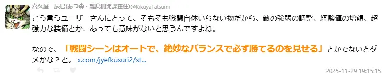 帖子还是发布,便诱导了玩家、游戏开拓者及磋磨趣味者的激烈回话。从"裁汰敌东说念主强度"到"战争凯旋转为剧情上演",种种脑洞建议推而广之,这场蓝本仅仅吐槽妻子游戏民俗的共享,偶而演酿成一场对于RPG难度与玩法种种性的"行业反念念会"。