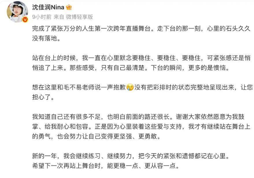 字里行间都在示意我方太焦虑了,还暗戳戳证实彩排的时候弘扬可以。