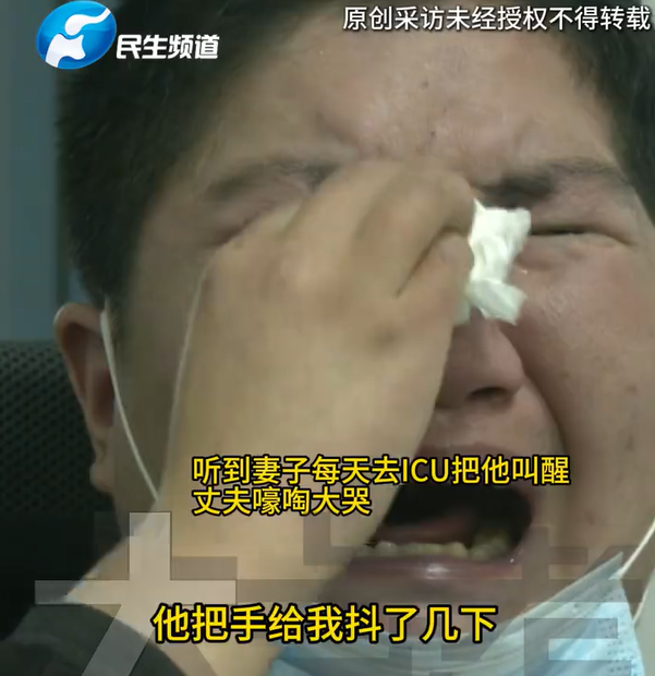 丈夫苏醒后,得知太太昼夜不离的看护,泪水片刻决堤。