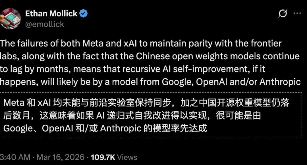 这意味着如若AI递归自我雠校得以终了,很可能是由谷歌、OpenAI和/或Anthropic的模子率先达成。