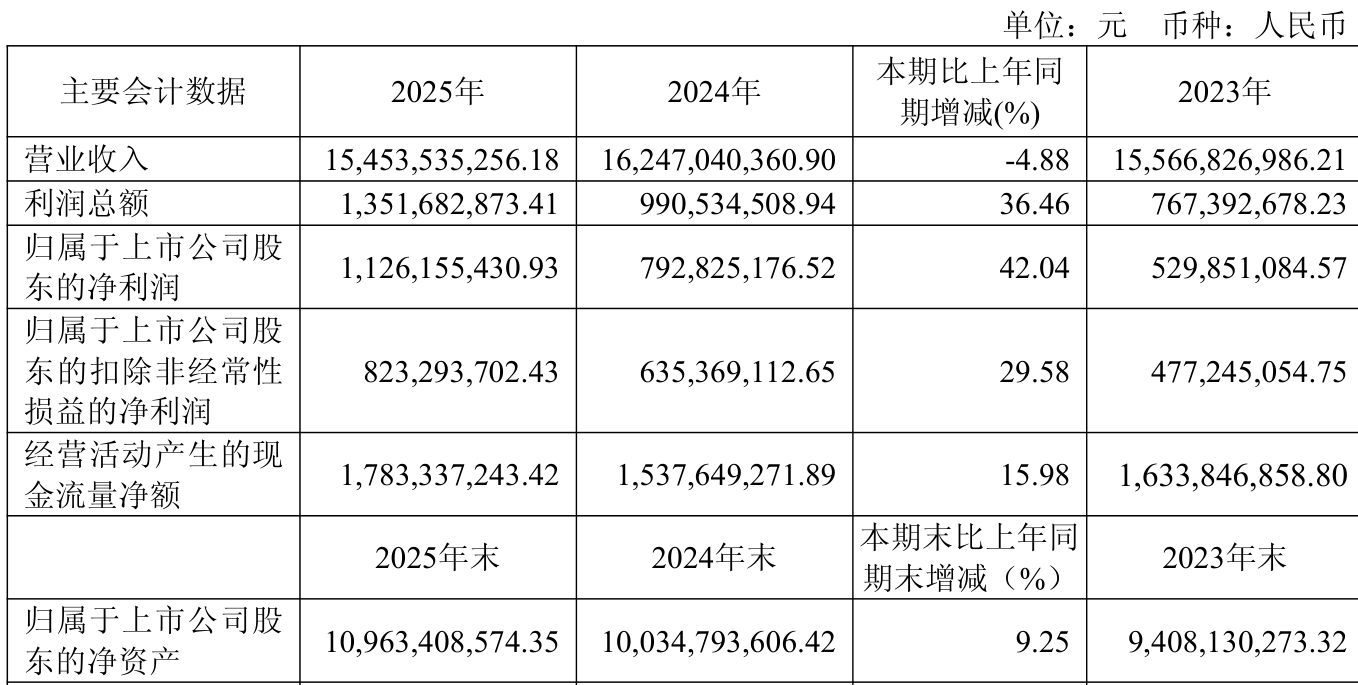 中证智能财讯卧龙电驱(600580)3月21日败露2025年年度论说。2025年,公司已毕商业总收入154.54亿元,同比下落4.88%;归母净利润11.26亿元,同比增长42.04%;扣非净利润8.23亿元,同比增长29.58%;野心活动产生的现款流量净额为17.83亿元,同比增长15.98%;论说期内,卧龙电驱基本每股收益为0.7233元,加权平均净钞票收益率为10.73%。公司2025年度分派预案为:拟向合座激动每10股派现1.8元(含税)。