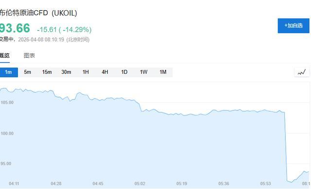 布伦特原油期货开盘暴跌15%,当今报93好意思元/桶,此前好意思国和伊朗原意为期两周的媾和契约。