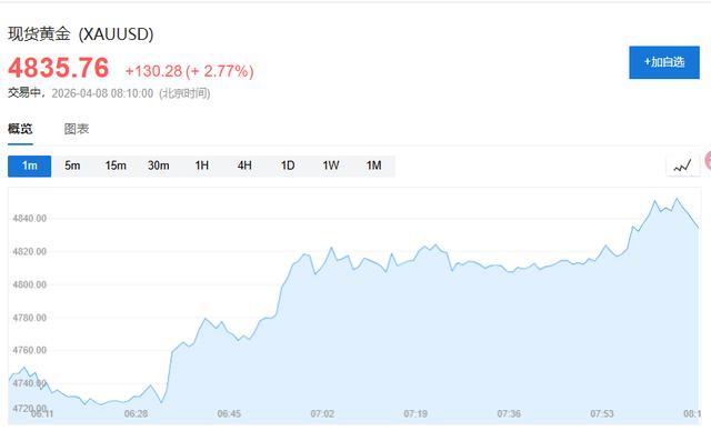 黄金在这次媾和音问中接续涨势,现货黄金日内涨幅扩大近3%,走高至4835好意思元上方。白银涨5.33%至76.81好意思元,铂金和钯金也同步上扬。